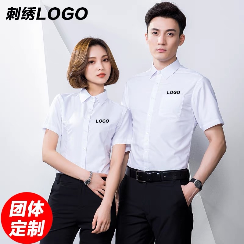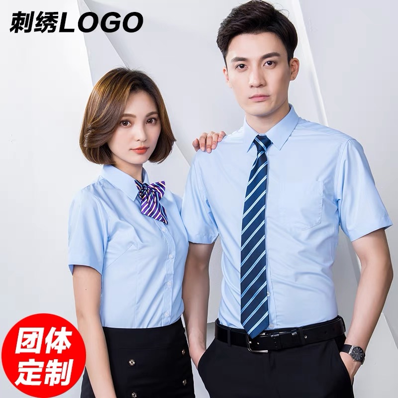 定制男女工作服,短袖衬衫刺绣LOGO,职业装正装商务衬衫